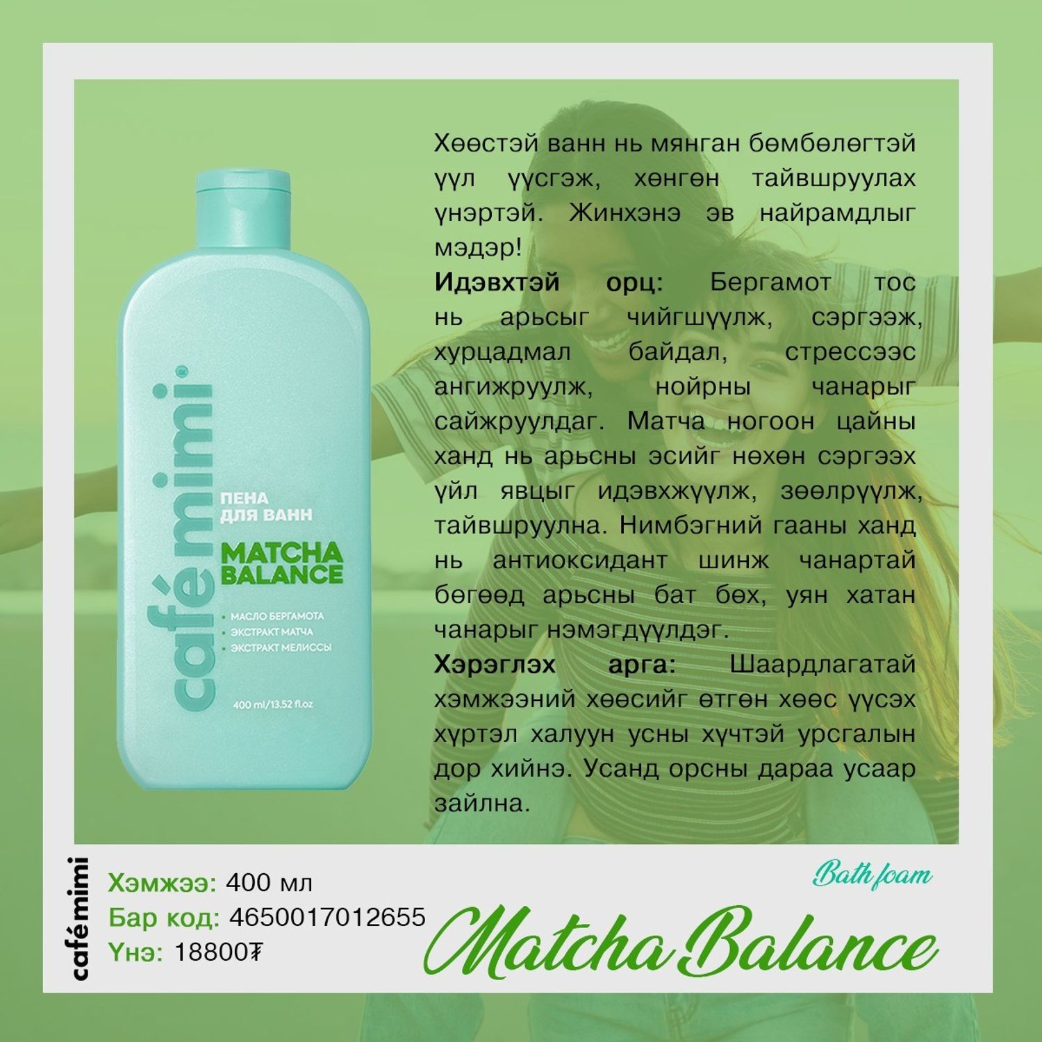 Танилцуулга: "MATCHA BALANCE" ванны хөөс, 400мл